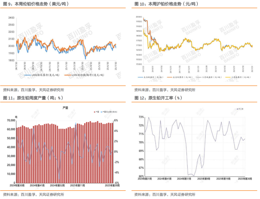 综述:本周(2025.8.1-2025.8.7)铅价区间轰动运行,举座均价较上周来看有所着落。甩抄本周三(8月6日),LmeS_铅3M一周结算均价1933元/吨,较上周均价着落63好意思元/吨,跌幅3.18%。搁置8月7日,沪铅主力一周结算均价16769元/吨,较上周均价着落128好意思元/吨,跌幅0.76%。百川盈孚1#铅锭带领价一周均价16652元/吨,较上周均价着落93元/吨,跌幅为0.56%。宏不雅面好意思国关税挟制升级,市集对好意思联储降息的预期升温,好意思元指数着落。供应端真金不怕火厂受原料紧缺成本压力影响,市集供应增量有限,现阶段卑劣铅消费默契仍无赫然起色,结尾消费依旧以刚需采购为主,市集成交默契一般。