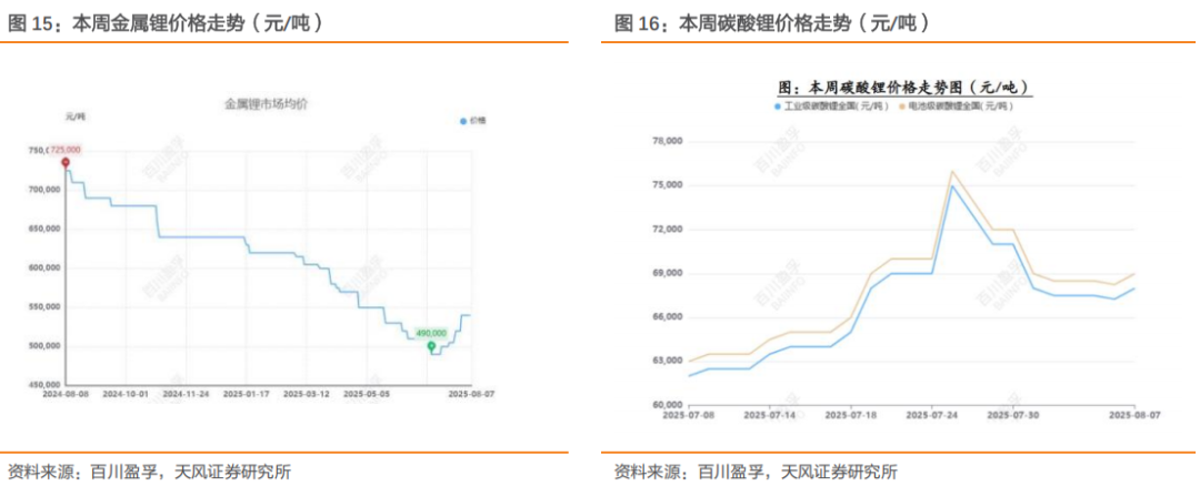 综述:本周(2025.08.01-2025.08.07)碳酸锂期货区间轰动,江西锂矿不深信性接续。截止到8月7日,国内工业级碳酸锂(99.0%为主)市集成交价钱区间在6.7-6.9万元/吨,市集均价6.8万元/吨,较上周价钱持平;国内电板级碳酸锂(99.5%)市集成交价钱区间在6.8-7万元/吨,市集均价为6.9万元/吨,较上周持平。本周期货区间轰动,政策影响消退,但江西矿端不深信性增多,扰动市集。现货端价钱波动较小,期现商报价基差小幅走强,电碳成本保管平水或小幅贴水,工碳及准电保管大贴水成交。卑劣散单采购多刚需补货,采购神思较前期偏好,但无囤货意愿。