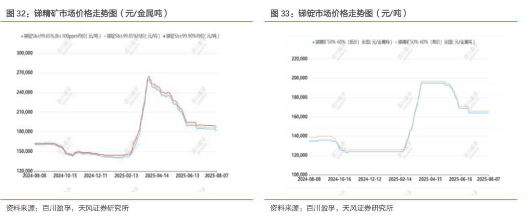 市集综述:本周(2025.8.1-2025.8.7)国内锑锭价钱下调。2#高铋锑锭市集价钱为17.85万元/吨,2#低铋锑锭市集价钱为18.25万元/吨,1#锑锭市集价钱为18.45万元/吨,0#锑锭市集价钱为18.75万元/吨,均价较上同期下调0.2万元/吨。本周氧化锑价钱调,99.5%三氧化二锑市集价钱15.35万元/吨,99.8%三氧化二锑市集价钱16.5万元/吨,均较上周同期价钱下调0.2万元/吨;本周来看,卑劣结尾需求还是处于相对底部,光伏玻璃减产预期还是完毕,需求疲软致使各厂家纷繁下调价钱,成交价钱相对蚁集,举座廉价货难买,原料端报价仍相对坚挺,7月锑锭举座供应仍成下行趋势,供应端依旧保持偏垂死的近况,现在主要所以破钞库存为主;市集举座成交情况平平,心态也多随行就市,惊奇老客户为主,刚需成交一单一议;出口方面,业内东谈主士称,极少有居品出口,举座收复并不好。国际价钱方面近两周报价略有下调,有业内东谈主士称现在对国际价钱关怀度不高,国表里价钱总会达到一种均衡,国际价钱总归会下调,下降原因可能受夏休需求端影响,但国外冶真金不怕火厂已建成分娩的音信有待阐述。