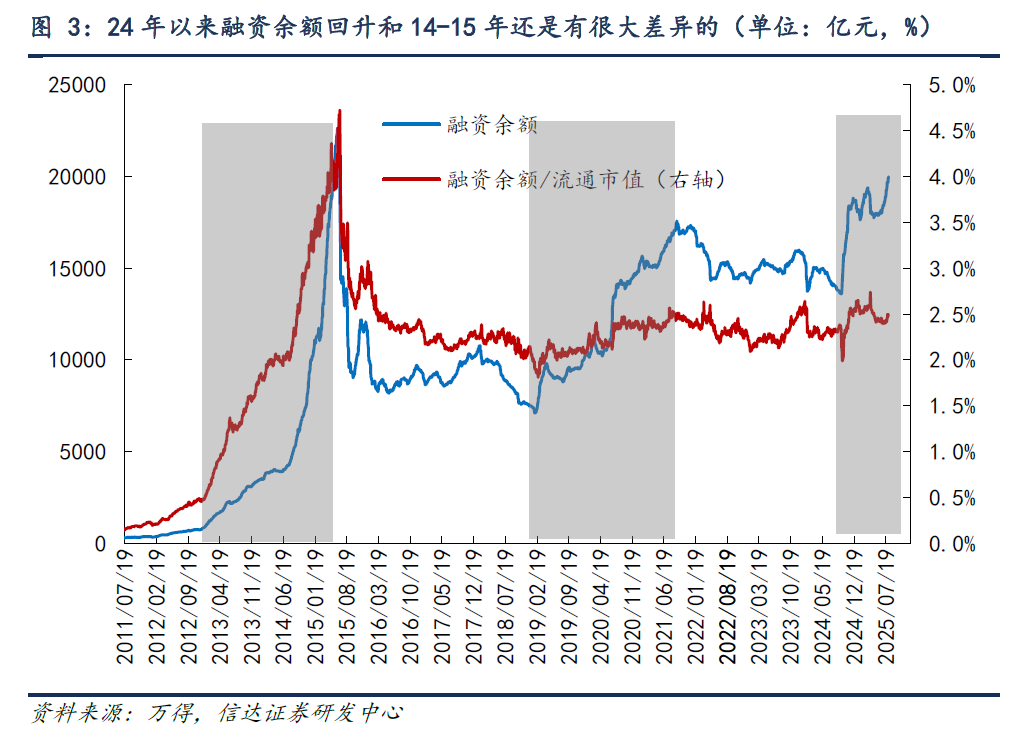 (2)2014-2015年增量资金主要来自杠杆资金,当今的监管更表率,是否意味着难以重演2014-2015年牛市?2014-2015年融资余额、融资余额/畅达市值均大幅增长,2019-2021年和2024年9月以来融资余额回升,但融资余额/流动市值增速不快。这评释杠杆资金有彰着流入,但举座和股市范围扩展速率差异不大。咱们觉得杠杆资金的占比会影响股市飞腾的速率,但不会影响场地。因为住户资金流入的内容是住户有较多的进款、其他钞票收益率不高、股市收货效应回升,每一轮牛市住户资金流入股市的渠说念都会略有相反。2005-2007年住户资金更多通过银证转账和申购公募基金入市,2013-2015年住户资金更多通过两融、场外配资和私募入市,2019-2021年住户资金更多通过公募权益家具入市,不同的流入样貌都不错有牛市。