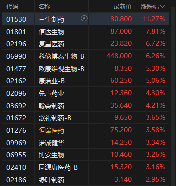 改变药办法逆市高潮,三生制药涨超11%。2025年国度医保谈判10月30日在北京开启。本年国谈在不时医保目次老例换取机制的基础上,初度细密引入“商保改变药目次”机制。星河证券研报合计,医药板块估值阅历较万古候换取,近期已呈现显耀结构性建筑趋势,但公募基金重仓握仓水平仍低于历史均值,2025年在维持指点商保发展的计谋布景下,支付端有望边缘改善,改变药械有望获益。